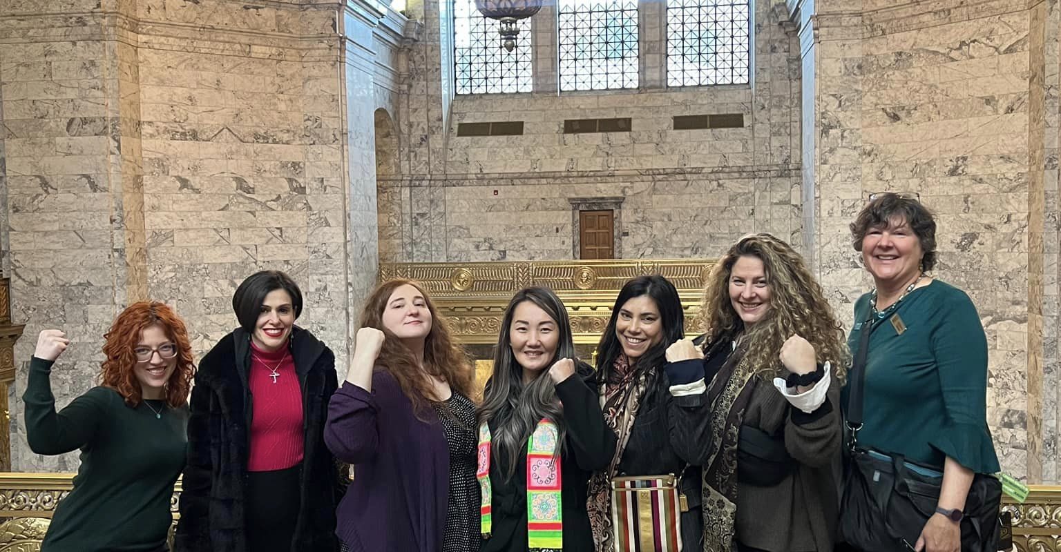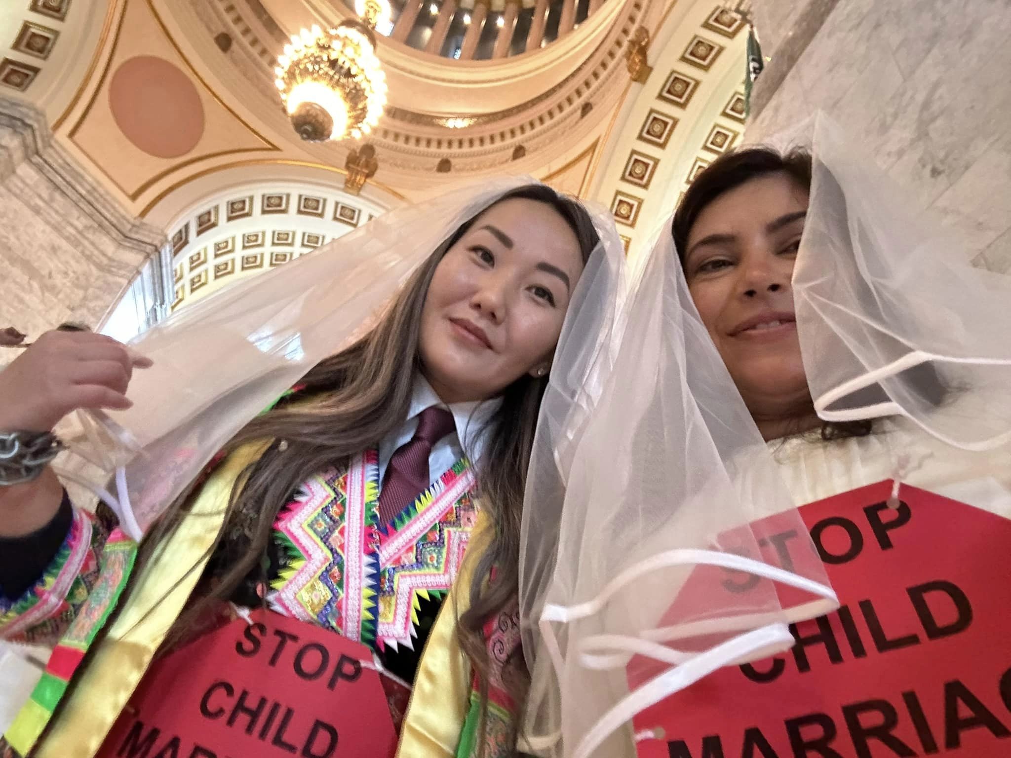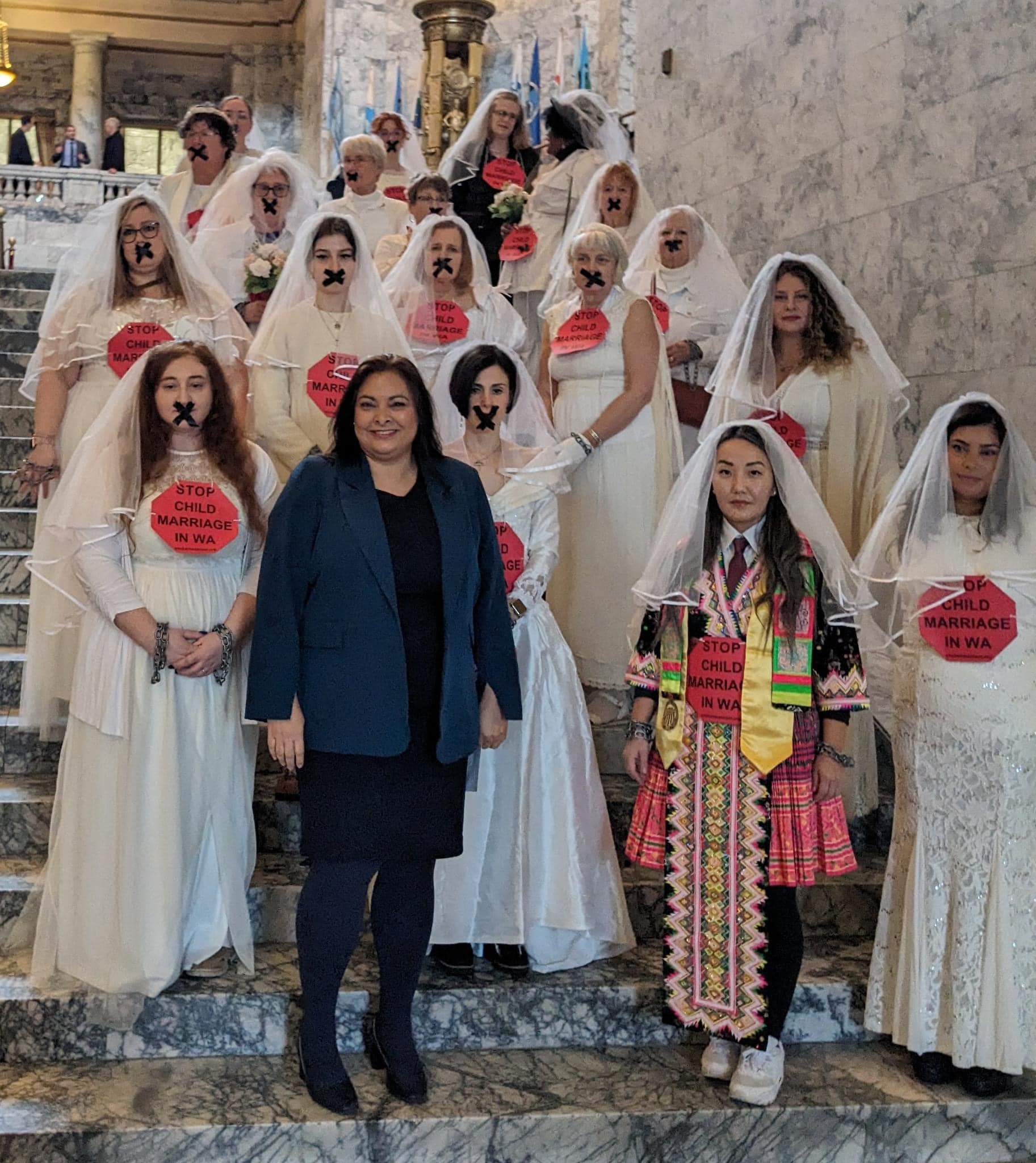 January 18th, Zonta Clubs of North Puget Sound, South Puget Sound and Olympia met with Unchained at Last to Chain-in for a Press event to support the passage of HB1455, the bill to EndChildMarriage in Washington State. The first week of the session, HB 1455 was passed unanimously by the House as one of only 3 bills on the first day of Session. January 17th, Zonta District 8 Advocacy Chair Katherine Cleland lobbied key Senators on the Law and Justice committee the day prior with Unchained at Last, the AHA Foundation and Survivors. The group was buoyed by the strong support they heard from both sides of the aisle. The testimony of our survivors present, Sara, married at 16, and Kate married at age 12 in Washington were essential to the impact of our visits, and to the resulting press. If you see coverage in the news, please contact Katherine. The Seattle Times wrote an impactful article on the event: https://www.seattletimes.com/seattle-news/politics/protesters-urge-wa-lawmakers-to-end-child-marriage/ The Senate Hearing, led by Chair Senator Manka Dhingra (in bottom photo), will be January 30th, when we will return to Olympia to provide testimony, and show our support. All are welcome, no bridal attire required. Advocacy timeline- January, Session starts Jan 9, Chain In Jan 18th and House bill 1455 is revived and passed Jan 8th, and sent to the Senate Law and Judiciary committee