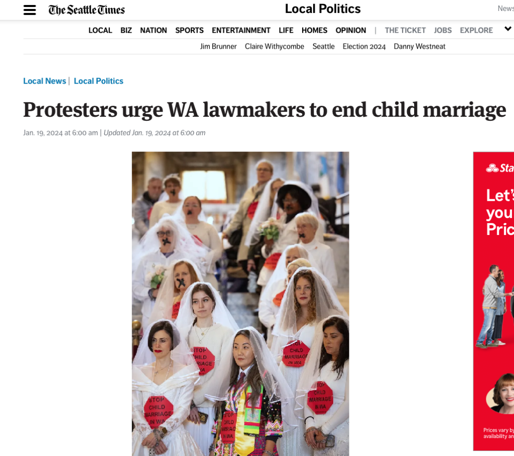 Zonta Club of Everett/ North puget Sound organizes protest to #EndChildMarriage in Washington state with Unchained At Last, the AHA Foundation, Sara Tasneem Advocacy and more. .